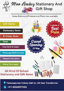 🎁 Welcome to Maa Ambey Stationary And Gift Shop! 📝 At Maa Ambey, we're your one-stop destination for all your stationary and gifting needs. Nestled in the heart of Lucknow, our shop boasts a wide array of high-quality stationary items and unique gifts to inspire creativity and spread joy. 📚 Stationary Selection: Browse through our extensive collection of pens, pencils, notebooks, journals, planners, and other essential stationary items. Whether you're a student, a professional, or a creative enthusiast, we have something for everyone to help you stay organized and productive. 🎉 Gift Galore: Looking for the perfect gift for a loved one or a special occasion? Explore our diverse range of gift items, including greeting cards etc.